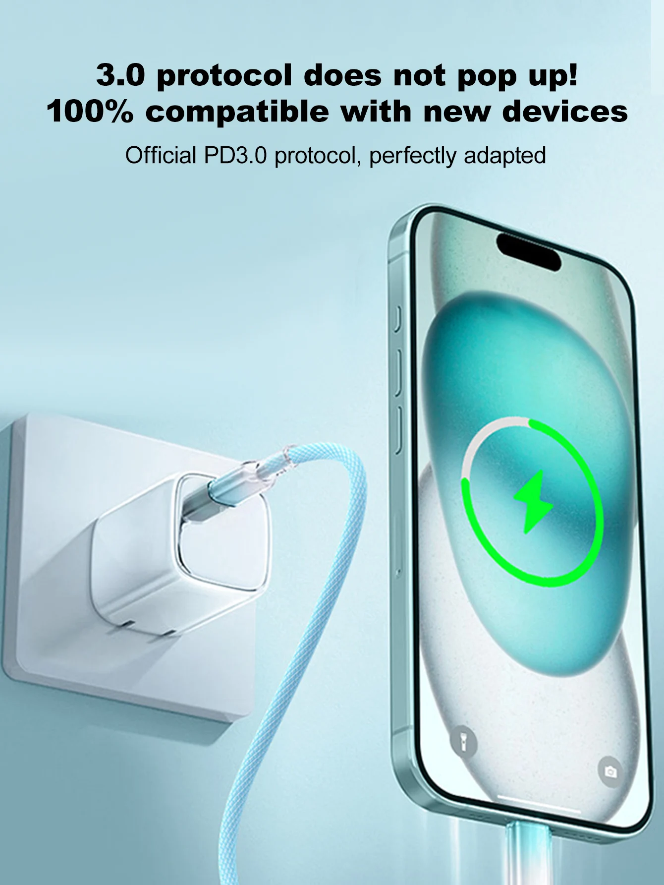 - توافق كامل: يتوافق الكابل مع جميع الأجهزة الجديدة بفضل بروتوكول PD 3.0، ليضمن لك تجربة شحن سلسة وفعالة.